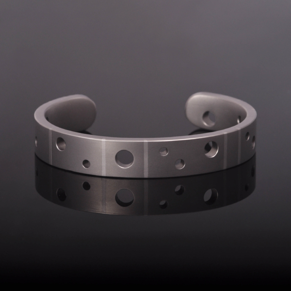 Herenarmband gemaakt van titanium met gaten en witgoud
