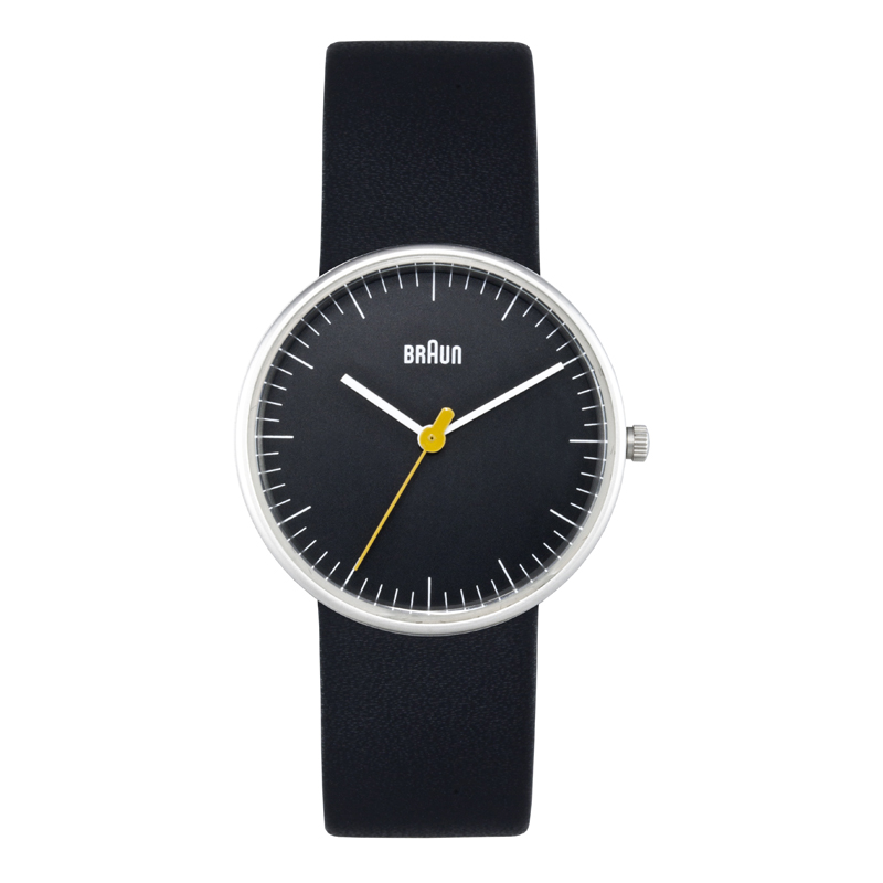 Dit horloge heeft een analoge tijdsaanduiding met drie wijzers, een zwarte lederen band, gehard mineraalglas en een diameter van 31 mm en is 8 mm hoog. Het horloge is waterdicht getest tot 50 meter en is uitgevoerd met een quartsz-uurwerk met batterij en wordt geleverd met een garantie van 2 jaar.