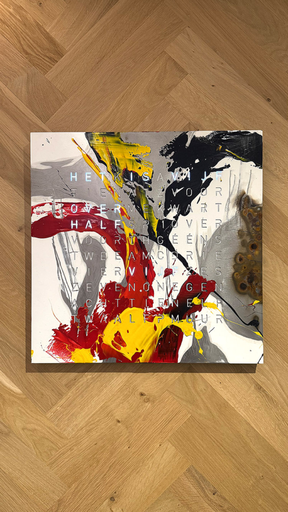 Door Marc Lange beschilderde klok (45 x 45 cm) ‘Protectivity’