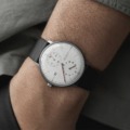The max bill Regulator has the typical face of the model series with a discreet fine silver-plated dial and a unique typography designed especially for these models. The additional designation indicates that this is a special dial layout with a central minute hand and decentralised hour and second hands.