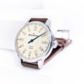 Het “tijdspektakel” vindt plaats in de 43 mm kast van het klassieke MeisterSinger №03 horloge. De transparante glazen achterkant onthult het nauwkeurige Zwitserse SW200 automatische kaliber, waarvan de vergulde rotor het horloge een gangreserve van 38 uur geeft. Het indivi-duele nummer is gegraveerd naast de naam van de editie. Het horloge is voorzien van een bruine, soepele vintage zadelleren band.
