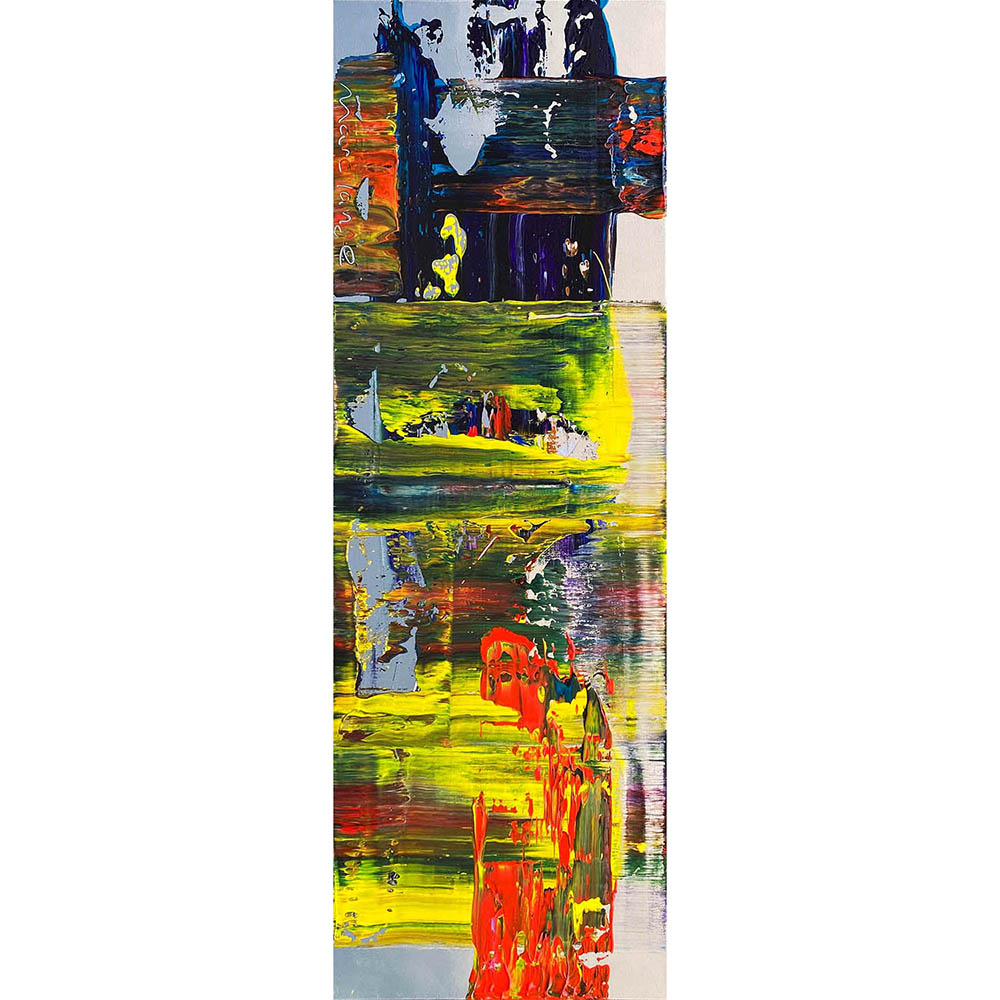 Abstract schilderij van Marc Lange. Acrylverf op linnen. Het zware linnen is bespannen op een aluminium frame zodat krom trekken met de jaren is uitgesloten. Het schilderij is afgewerkt met een hoogglans vernis waardoor het lijkt alsof de verf nog nat is! Het is ingelijst in een strakke zwarte baklijst. De genoemde prijs is inclusief lijst.