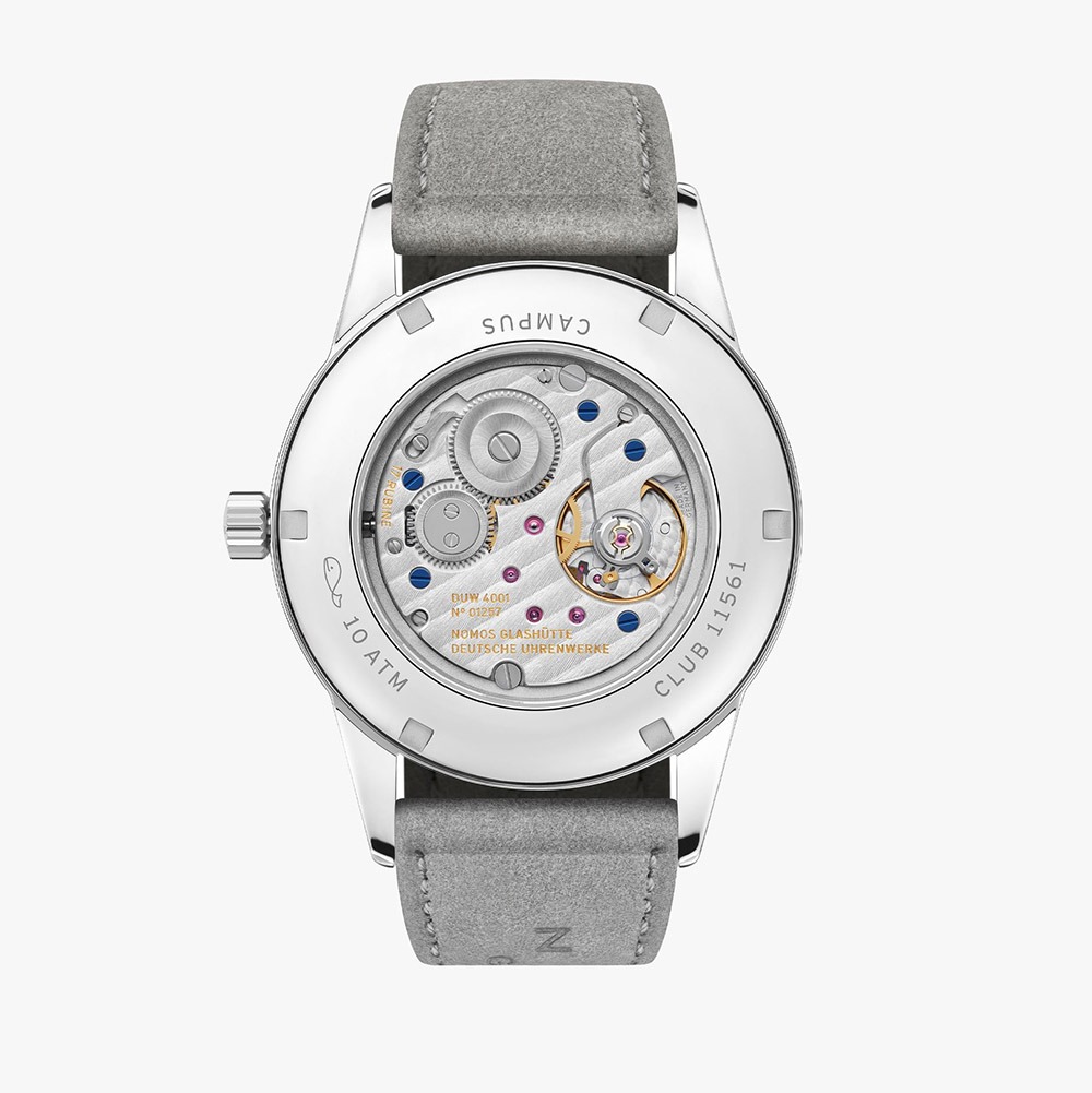 This striking mechanical watch is immediately pleasing. Its spontaneity is also matched by how uncomplicated it is: excellent readability, a robust stainless steel case, here in the slightly larger diameter of 38.5 millimeters, yet only 8.5 millimeters high and water resistant to 10 atm. Club Campus is powered by the meticulously crafted hand-wound DUW 4001 movement, reliable and highly precise—style and quality from Glashütte.