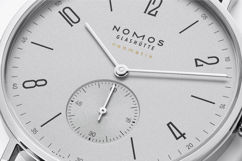 With Tangente neomatik 39 platinum gray, NOMOS Glashütte has created an elegant automatic watch—full of technical ingenuity of the highest quality. With a movement height of just 3.2 millimeters, its neomatik caliber DUW 3001 sits perfectly into the slender steel case. The bidirectional winding rotor captures kinetic energy and stops when fully wound—protecting the mainspring of this enduring timepiece. The NOMOS swing system ensures the highest level of accuracy. The refined surfaces of the movement are lavishly decorated. The platinum gray on the dial underscores the value of this watch.