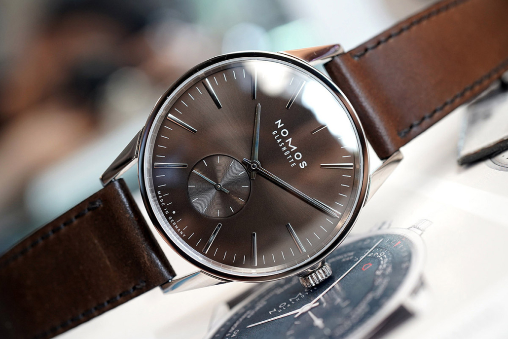 DUW 5001: in-house built NOMOS caliber with automatic winding; NOMOS swing system with tempered blue balance spring. (DUW stands for NOMOS Glashütte Deutsche Uhrenwerke.)