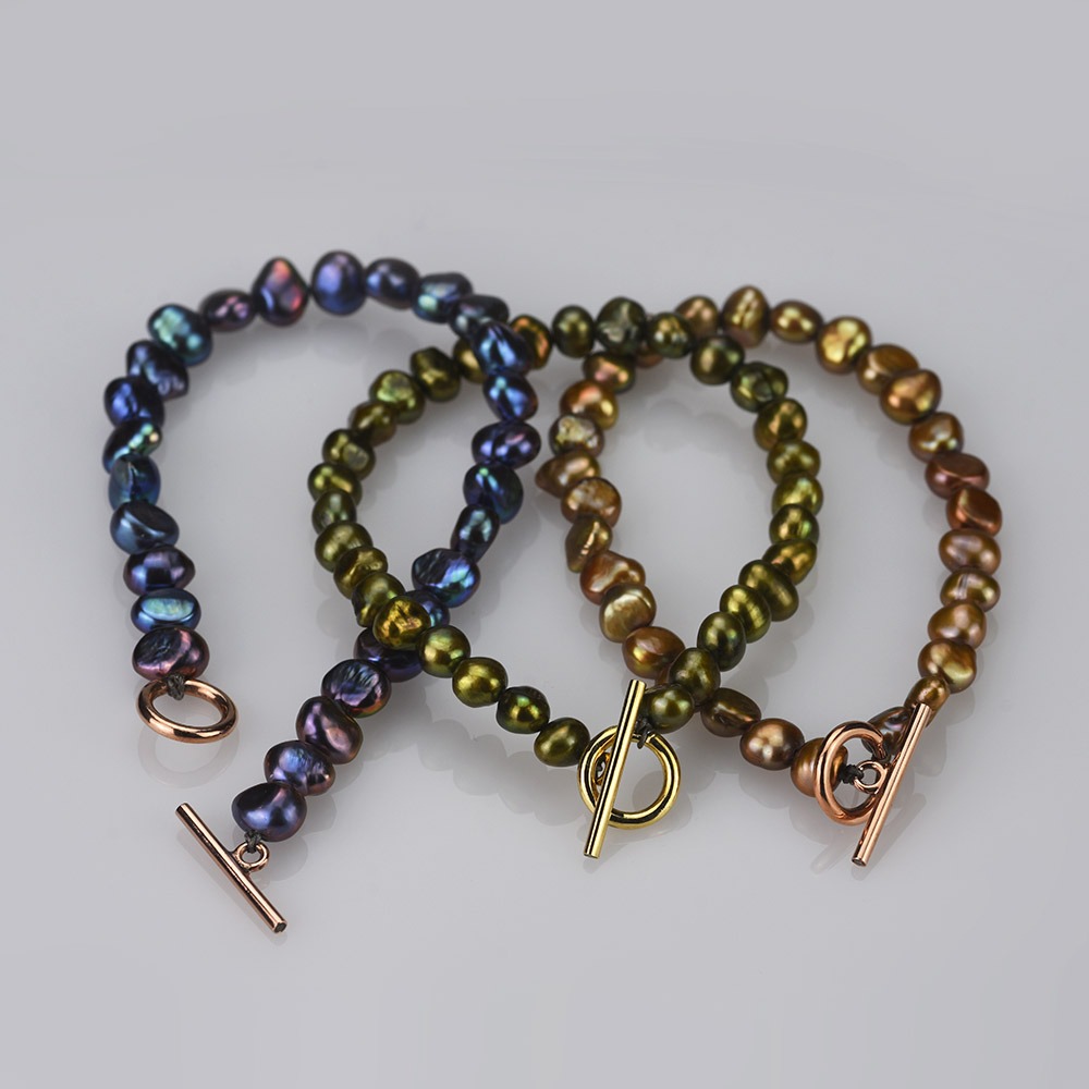 Deze prachtige cultivé armbanden zijn verkrijgbaar zonder en met een gouden (eventueel met diamant bezette) sluiting.